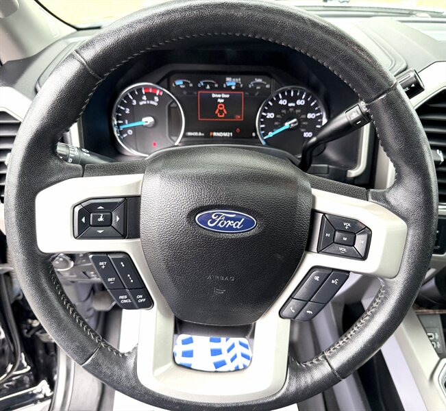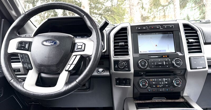 - Lariat Ultimate PackageIncludes ambient lighting, power tilt/telescoping steering wheel with heat, memory and audio controls, voice activated navigation system with HD and SiriusXM satellite radio, remote start system, intelligent access with push button start, power heated/cooled driver and passenger seats with driver side memory, easy entry/exit memory drivers seat feature, power adjustable pedals with memory, tailgate step, remote tailgate release, automatic high beam with rain sensing windshield wipers, LED center high mounted stop lamp, and PowerScope trailer tow mirrors with memory.