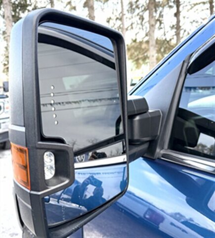 - Power Adjustable Camper Style MirrorsIncludes auto-dimming inside rearview mirror, black outside heated power adjustable vertical camper manual-folding and extending mirrors, integrated turn signal indicator consisting of 51 square inch flat mirror surface positioned over a 24.5 square inch convex mirror surface with a common head and lower convex spotter glass, auxiliary cargo lamp for backing up and amber auxiliary clearance lamp.
