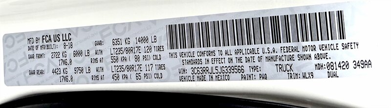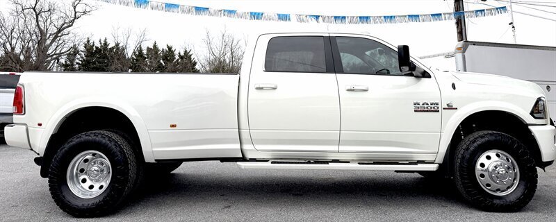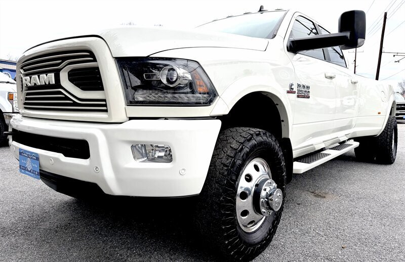 ***MD STATE INSPECTED***SOUTHERN TRUCK***2018 RAM 3500 CREW CAB DRW***LARAMIE***LONG BED***4X4***6.7 I6 CUMMINS TURBO DIESEL***AISIN 6-SPEED AUTO TRANSMISSION***PEARL WHITE w/BLACK LEATHER BUCKET SEATS***RADIO: UCONNECT 4C NAV W/8.4" DISPLAY***SUNROOF***BACK UP CAMERA***REMOTE START***SPRAY IN BEDLINER***CLEARANCE LAMPS***GVWR: 14,000 LBS***DUAL ALTERNATORS RATED AT 440 AMPS***4.10 AXLE RATIO***BLACK, LEATHER TRIMMED SPORT BUCKET SEATS***DUAL REAR WHEELS***LED BED LIGHTING***220 AMP ALTERNATOR***STOP LAMP W/CARGO VIEW CAMERA***5TH WHEEL/GOOSENECK TOWING PREP GROUP***SPORT APPEARANCE GROUP***BODY COLOR RUNNING BOARDS***
