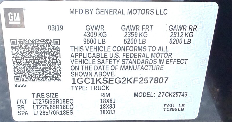 BOTH POWER SEATS** FOG LAMPS, FRONT, HALOGEN***2 KEYS**REMOTE START**SPRAY LINEX**SEATING, HEATED DRIVER AND FRONT PASSENGER***AUDIO SYSTEM, CHEVROLET INFOTAINMENT SYSTEM WITH 8" DIAGONAL COLOR TOUCH-SCREEN, AM/FM STEREO***TIRES, LT275/65R18E ***BUMPER, FRONT/REAR MIRRORS, OUTSIDE HEATED POWER-ADJUSTABLE VERTICAL TRAILERING, MANUAL-FOLDING AND EXTENDING, BLACK; BUMPER, FRONT, BODY-COLORBLACKWALL***WHEELS, 18" LAMPS, SMOKED AMBER ROOF MARKER*** BLACK ALUMINUM***MIRROR, INSIDE REARVIEW AUTO-DIMMING***BOSE SOUND WITH 6 SPEAKER SYSTEM** REAR AXLE, 4.10 RATIO***ALTERNATOR, 220 AMPS***Z71 PACKAGE, OFF-ROAD***LT PREFERRED EQUIPMENT GROUP***SNOW PLOW PREP PACKAGE
