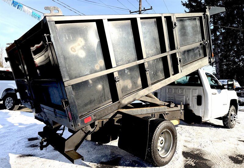 ***1-OWNER***2019 CHEVROLET SILVERADO 3500 REG CAB DRW***32,000 MILES***STEEL MASON DUMP BED 12X7ft)**6.0 V8 VORTEC GAS***RWD***MIRRORS, OUTSIDE HEATED POWER-ADJUSTABLE VERTICAL TRAILERING, UPPER GLASS, MANUAL-FOLDING AND EXTENDING, BLACK***AUDIO SYSTEM, CHEVROLET INFOTAINMENT SYSTEM WITH 7" DIAGONAL COLOR TOUCH-SCREEN, AM/FM STEREO***BACK UP CAMERA***UPFITTER SWITCHES***SEATS, FRONT 40/20/40 SPLIT-BENCH*** REAR AXLE, 4.10 RATIO***TRAILER BRAKE CONTROLLER, INTEGRATED***INTEGRATED TURN SIGNAL MIRRORS***GVWR: 13,200***