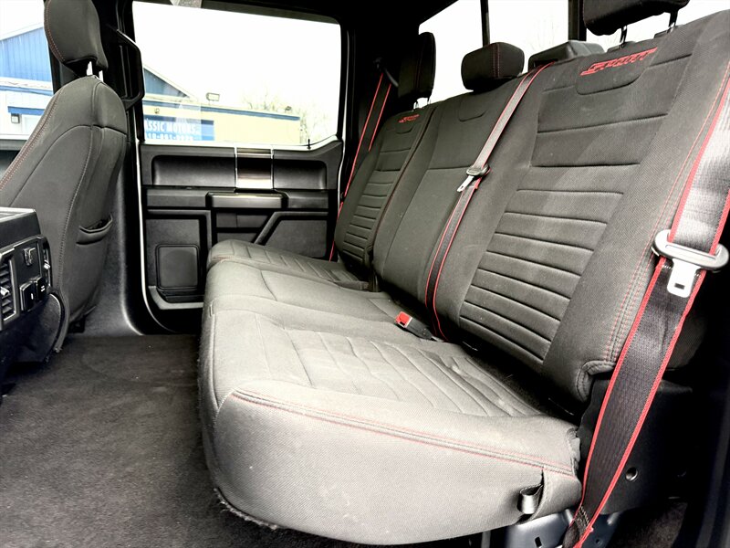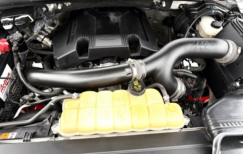 - STX Appearance PackageIncludes 20 inch machined-aluminum wheels with Flash Gray painted pockets, 275/55R20 BSW all-terrain tires, black mesh grille with body-color surround, body-color front fascia, body-color front and rear bumpers, STX sport box side decal, fog lamps, electronic rear window defroster, privacy glass, unique black sport cloth upholstery, manual driver and passenger lumbar adjustment, seat back driver and passenger map pockets, SYNC 3 enhanced voice recognition communications and entertainment system with 911 assist and AppLink, Apple CarPlay, Android Auto, 8 In. LCD touchscreen in center stack, and two smart charging USB ports.