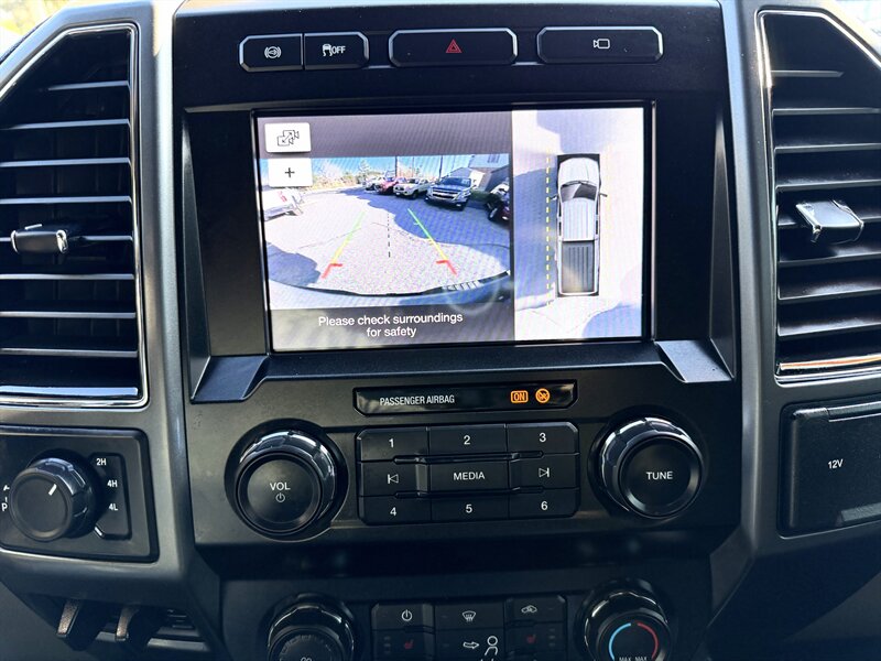 - XLT Premium PackageIncludes 18 inch chrome aluminum wheels, LT275/65R18E all-season BSW tires, chrome exhaust tip, two front chrome tow hooks, unique chrome mirror caps, chrome pickup bed tie-down hooks, chrome tailgate handle, body color door handles with chrome insert, 6 inch angular chrome step bars, fog lamps, automatic lock and unlock, 4.2 inch LCD productivity screen, 8 inch center stack screen, power adjustable pedals, 8-way power adjustable driver seat with heat, 2-way manual passenger seat with heat, SecuriCode keyless entry keypad on driver side, reverse sensing system, and SYNC 3.