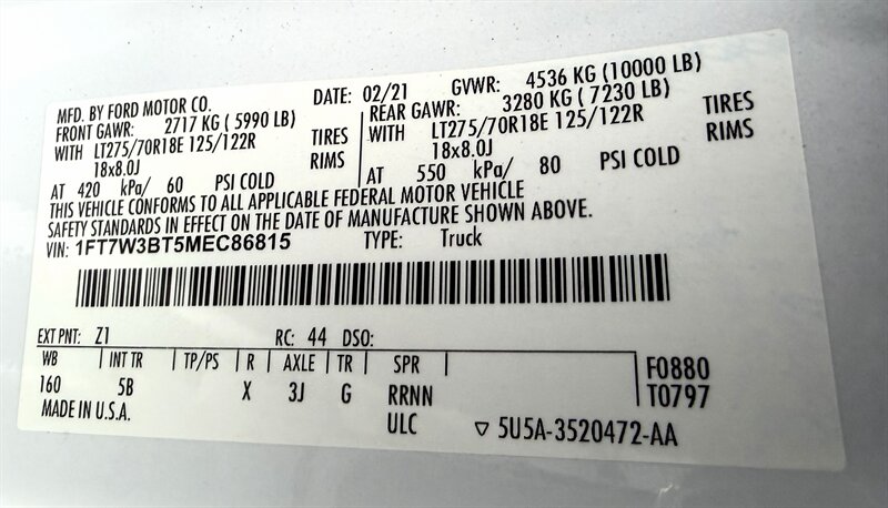 ****1-OWNER****MD STATE INSPECTED***2021 FORD F-350 CREW CAB***LARIAT***4X4*** 6.7L POWER STROKE V8 DIESEL***10-SPEED AUTOMATIC***POWER MOONROOF TWIN PANE****UTT CAMERA PRO TRLR BACKUP***ADAPTIVE STEERING****FX4 OFF-ROAD PACKAGE***11,100# GVWR PACKAGE**** HEATED REAR SEATS***397 AMP ALTERNATOR***UPFITTER SWITCHES (6)****ENGINE BLOCK HEATER***OXFORD WHITE w/BLACK LEATHER****