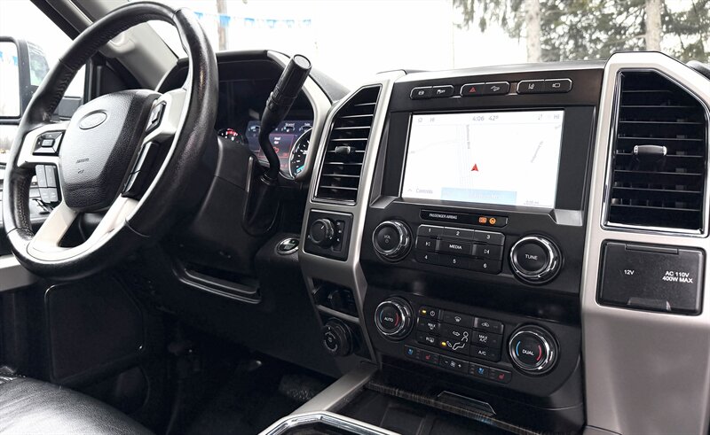 - Lariat Ultimate PackageIncludes ambient lighting, power tilt/telescoping steering wheel with heat, memory and audio controls, voice activated navigation system with HD and SiriusXM satellite radio, remote start system, intelligent access with push button start, power heated/cooled driver and passenger seats with driver side memory, easy entry/exit memory drivers seat feature, power adjustable pedals with memory, tailgate step, remote tailgate release, LED center high mounted stop lamp, and PowerScope trailer tow mirrors with memory.