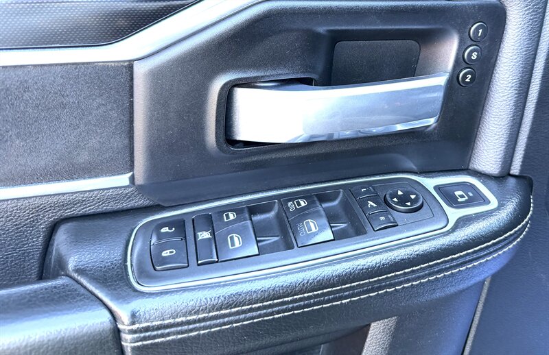 - Laramie Level B Equipment GroupIncludes 8.4 inch touch screen display, Apple Carplay, Android Auto, AM/FM radio, HD radio, integrated voice command with Bluetooth, media hub with USB and auxiliary audio inputs, 4G LTE Wi-Fi hotspot, GPS navigation, SiriusXM satellite radio with Traffic Plus, Travel Link and Guardian, Harman Kardon 17 speaker audio system with 750 watts, automatic high beam headlamp control, rain-sensitive windshield wipers, power folding heated exterior tow mirrors, auxiliary mirror-mounted reverse lamps, 2-driver memory for driver seat, radio, exterior mirrors, and pedals, ventilated front seats, heated second row seats, and remote tailgate release.