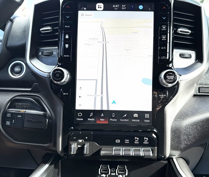 - UConnect 5 Nav with 12.0 In. DisplayIncludes UConnect with 12.0 inch touch screen display, Apple Carplay, Android Auto, Alexa built-in, AM/FM radio, HD radio, integrated voice command with Bluetooth, media hub with USB and auxiliary audio inputs, GPS navigation, SiriusXM 360L satellite radio with Traffic Plus, Travel Link and Guardian, and dual zone automatic climate control air-conditioning.