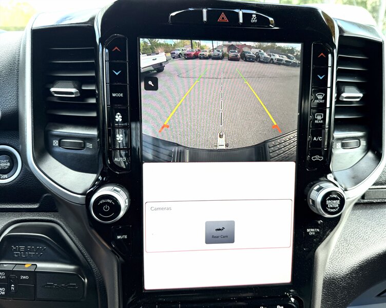 - Level C Equipment GroupIncludes 7.0 in. TFT cluster color display, dual zone automatic climate control air-conditioning, 18 x 8 inch polished aluminum wheels, front fog lamps, LED taillamps, dampened tailgate, power sliding rear window with defroster, rear dome light with on/off switch, rearview auto-dimming mirror, dual sun visors with illuminating vanity mirrors, ParkSense front and rear park assist system, remote start system, security alarm, universal garage door opener, front and rear 115V power outlets, 400W inverter, exterior 115V power outlet, cloth heated 40/20/40 premium split bench seat, 8-way power adjustable driver seat with power lumbar adjustment, 4-way manual adjust passenger seat, front seatback map pockets, front armrest with cupholders, front center seat cushion storage, rear 60/40 split folding seat, folding flat load floor storage, power adjustable pedals, leather wrapped heated steering wheel with audio controls, dual glove boxes, glove box lamp, and footwell courtesy lamps.