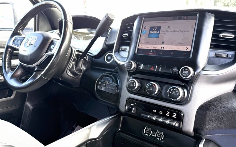 - Level 1 Equipment GroupIncludes 8.4 inch touch screen display, Apple Carplay, Android Auto, AM/FM radio, HD radio, integrated voice command with Bluetooth, media hub with USB and auxiliary audio inputs, SiriusXM satellite radio, 4G LTE Wi-Fi hotspot, 3.5 in. TFT cluster color display, sliding rear window, rear dome light with on/off switch, power folding and power telescoping exterior tow mirrors with supplemental signals and courtesy lamps, black mirror caps, forward and reverse utility lights, front fog lamps, cloth 40/20/40 premium split bench seat, 8-way power adjustable driver seat with power lumbar adjustment, 4-way manual adjust passenger seat, front seatback map pockets, front armrest with cupholders, front center seat cushion storage, and leather wrapped steering wheel with audio controls.