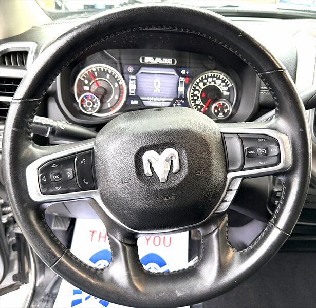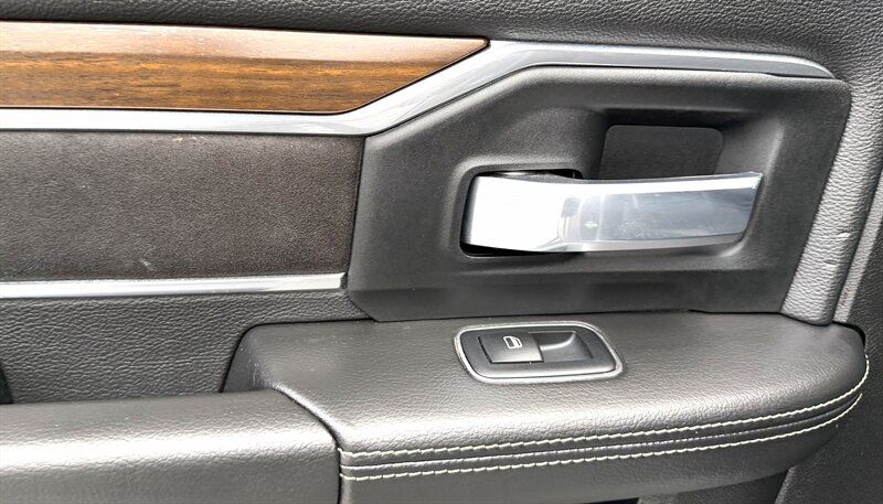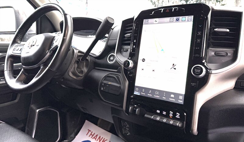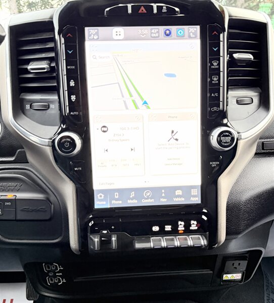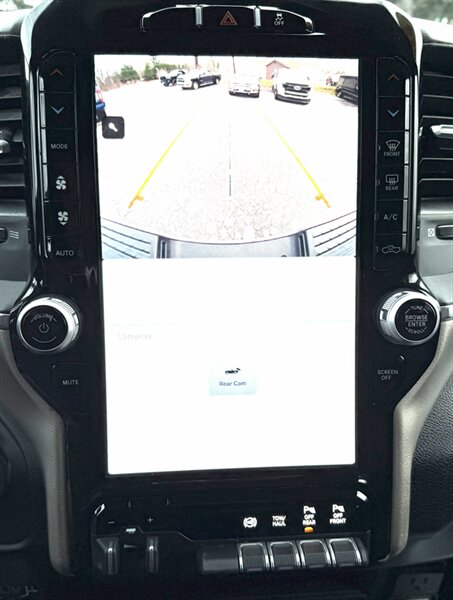 - Laramie Level 1 Equipment GroupIncludes UConnect with 12.0 inch touch screen display, Apple Carplay, Android Auto, Alexa built-in, AM/FM radio, HD radio, integrated voice command with Bluetooth, media hub with USB and auxiliary audio inputs, GPS navigation, SiriusXM 360L satellite radio with Traffic Plus, 4G LTE Wi-Fi hotspot, Travel Link and Guardian, emergency vehicle alert system, off-road and trailer tow info pages, blind-spot monitoring with trailer coverage and rear cross path detection, ParkSense front and rear park assist system w/stop, automatic high beam headlamp control, LED reflector headlamps, LED fog lamps, LED taillamps, 18 x 8 inch polished aluminum wheels, rain-sensitive windshield wipers, power folding and power telescoping exterior heated tow mirrors with supplemental signals and courtesy lamps, forward and reverse utility lights, chrome mirror caps, auto-dimming exterior mirrors, reverse tilt mirrors, 2-driver memory for driver seat, radio, exterior mirrors, and pedals, rearview auto-dimming mirror, power sliding rear window with defroster, remote tailgate release, and second row in-floor storage bins.